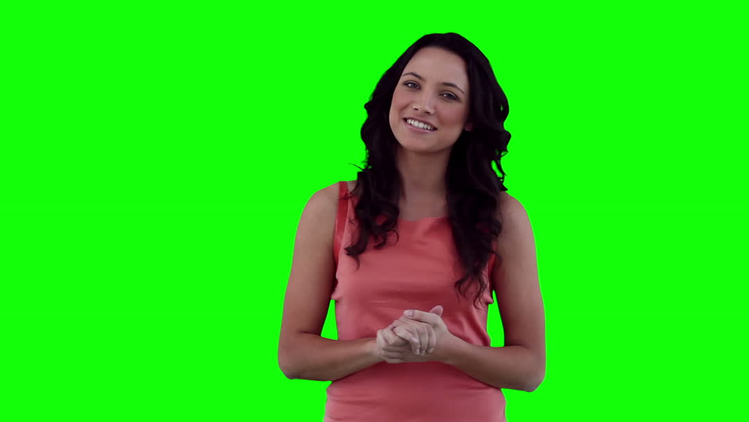 - Smiling Woman Presenting Against Green Screen Background
