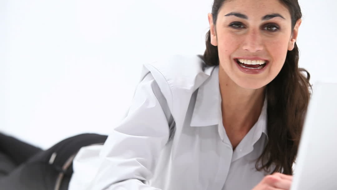 Smiling Woman Reclining While Using a Laptop at Home Video