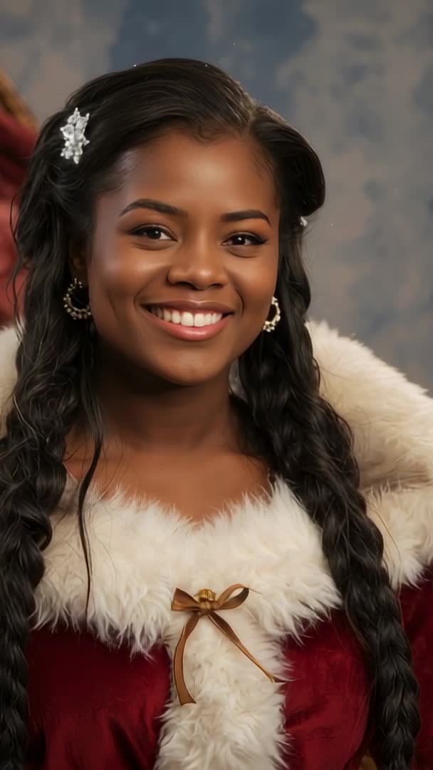 AI Generated Video. Vertical video portrait showing smiling woman wearing red velvet fur-trimmed dress, long braided hair with decorative hairclip and gold hoop earrings, warm studio lighting and soft bokeh background, head-and-shoulders closeup capturing natural smile and dimples. Footage rolling with gentle movement for subtle cinematic feel. Usage ideas: - Using for holiday marketing campaigns, seasonal social media reels, Instagram Stories and TikTok ads - Using for greeting cards, e-cards, seasonal email headers and event invitations - Using for retail fashion promos, beauty and jewelry showcases, e-commerce banners and catalog intros - Using for lifestyle and family holiday content, influencer reels and brand storytelling Editing tips: - Cropping for 9:16 vertical aspect for mobile-first platforms - Adding festive overlays like falling snow, twinkle lights, or animated ribbons - Applying warm color grade to enhance cozy festive mood - Adding gentle camera motion or subtle zoom for loopable social clips - Placing headline text on upper or lower third while keeping face area clear Target audiences: - Retailers, beauty brands, holiday event planners, content creators and advertising agencies