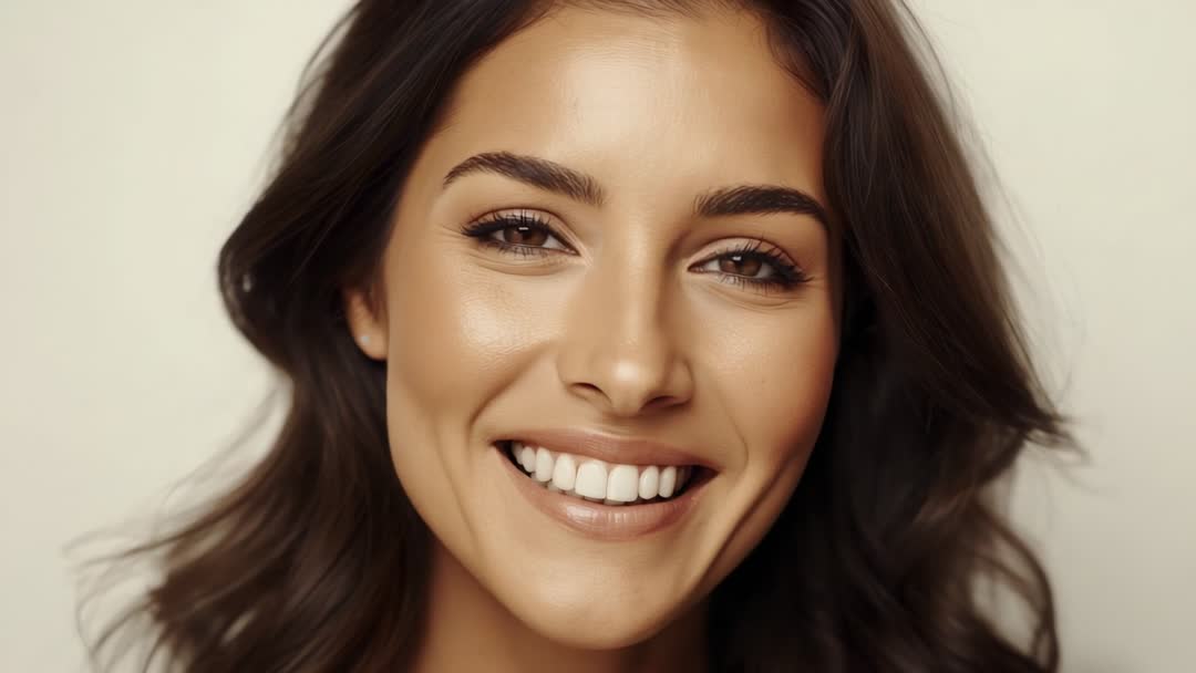 AI Generated Image. This footage showcases a young woman in a studio setting, elegantly tilting her head and winking towards the camera while smiling. The subject wears a neutral top, emphasizing the minimalistic style with a focus on natural beauty. Ideal for use in campaigns promoting skincare, beauty products, or self-confidence initiatives. Also suitable for blogs and advertisements focusing on positive emotion and professional branding.