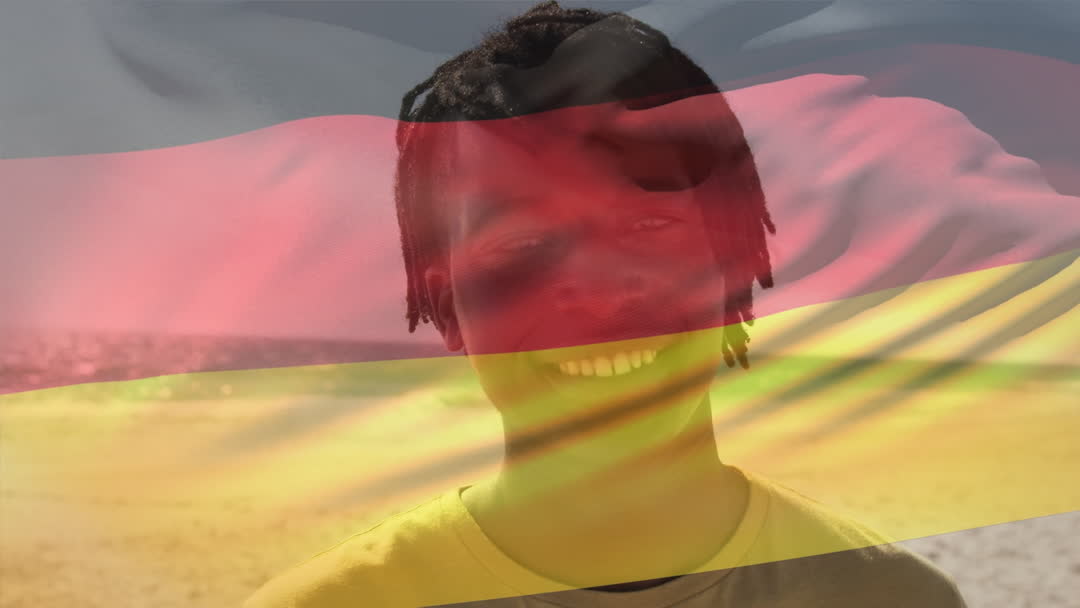 Smiling Young Man at Beach with Superimposed German Flag Video