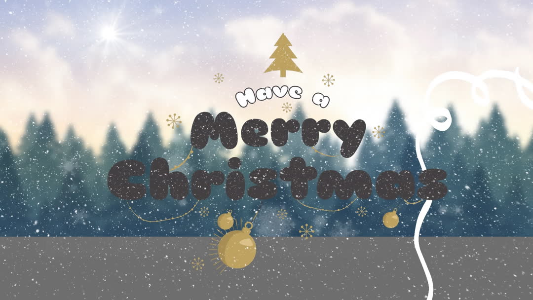 This digital banner features animated snow falling over 'Have a Merry Christmas' text set against a winter landscape with silhouetted evergreen trees. Snowflakes delicately accentuate the festive message, capturing the magic of the holiday season. Ideal for online Christmas wishes, holiday marketing materials, or seasonal greeting campaigns.
