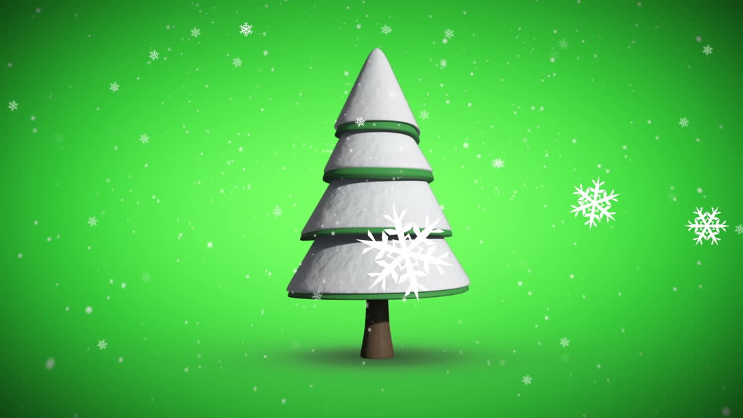 Festive animation featuring a stylized Christmas tree with snow accented by falling snowflakes against a vibrant green backdrop. Perfect for digital holiday cards, festive promos, or seasonal online content. Engages viewers with a cheerful and wintry charm, suitable for enhancing celebratory media.