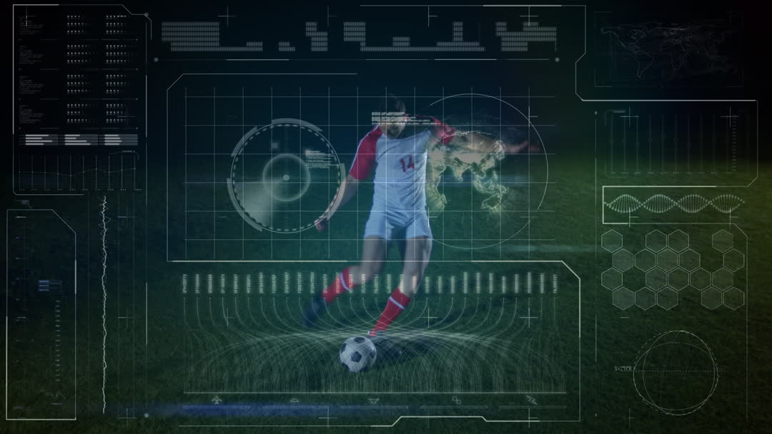 - Soccer Player Kicking Ball with Technology Data Overlay