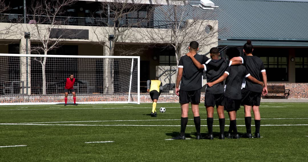 <a target="_blank" href=https://pikwizard.com/video/soccer-player-taking-penalty-kick-with-teammates-and-goalkeeper/6160453f827e44ba1b3804ddd662d917/>PikWizard</a>