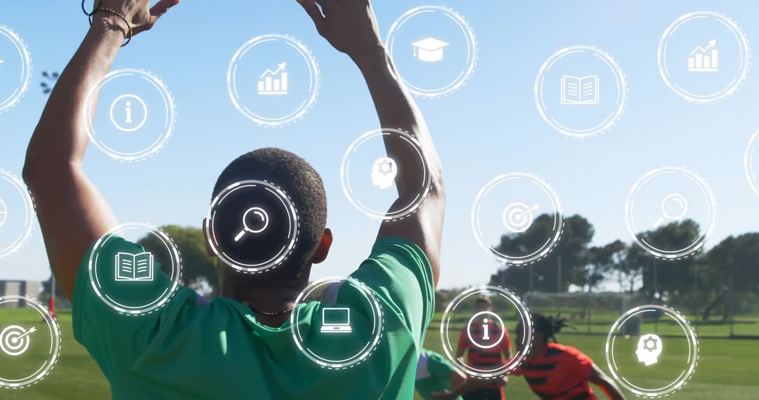 - Soccer Player Throwing Ball with EdTech Icon Overlays on Sunny Day