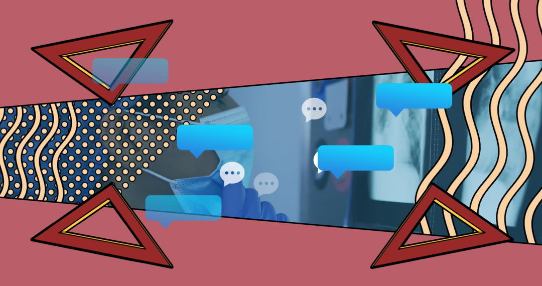 Animation depicts blend of communication technology and healthcare with social media icons layered over medical professional analyzing data. Ideal for illustrating connectivity in modern healthcare environments, emphasizing themes of health communications, digital innovations, and telemedicine.
