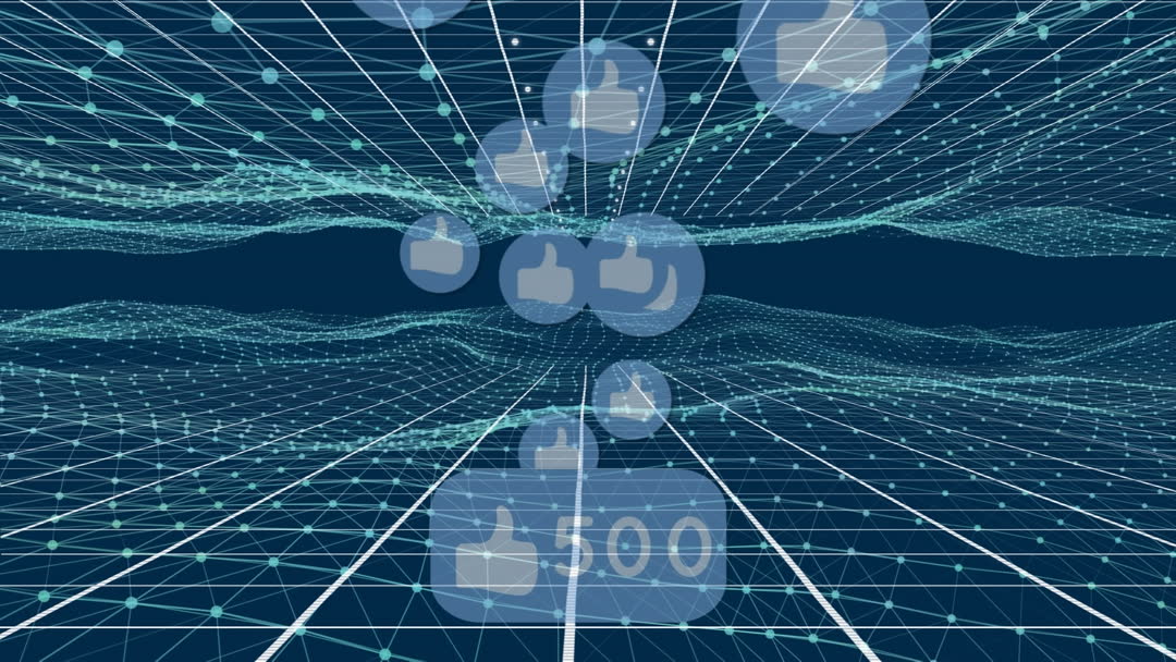 Social Media Data Flow with Like Icons Over Digital Grid Video