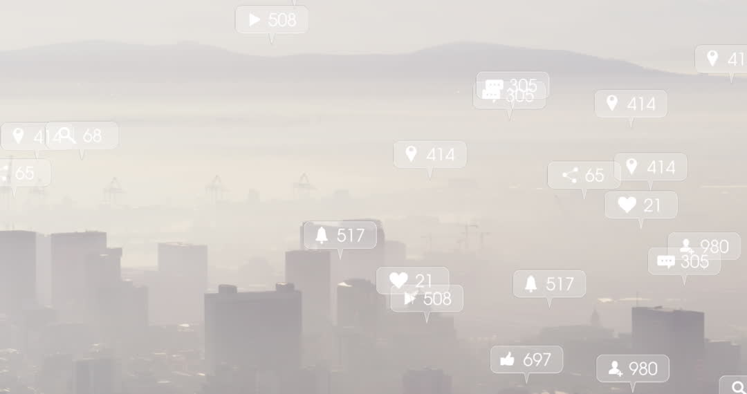 - Social Media Icons Overlay on HAZY Cityscape with Connection Concept