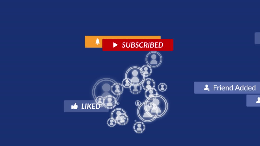 Dynamic representation of social media engagement with 'liked', 'subscribed', and 'friend added' notifications. Ideal for illustrating concepts of digital interaction, marketing strategies, and online communication platforms. Usable for teaching social media literacy, discussing online behaviors, or as a visual for presentation about internet technologies.