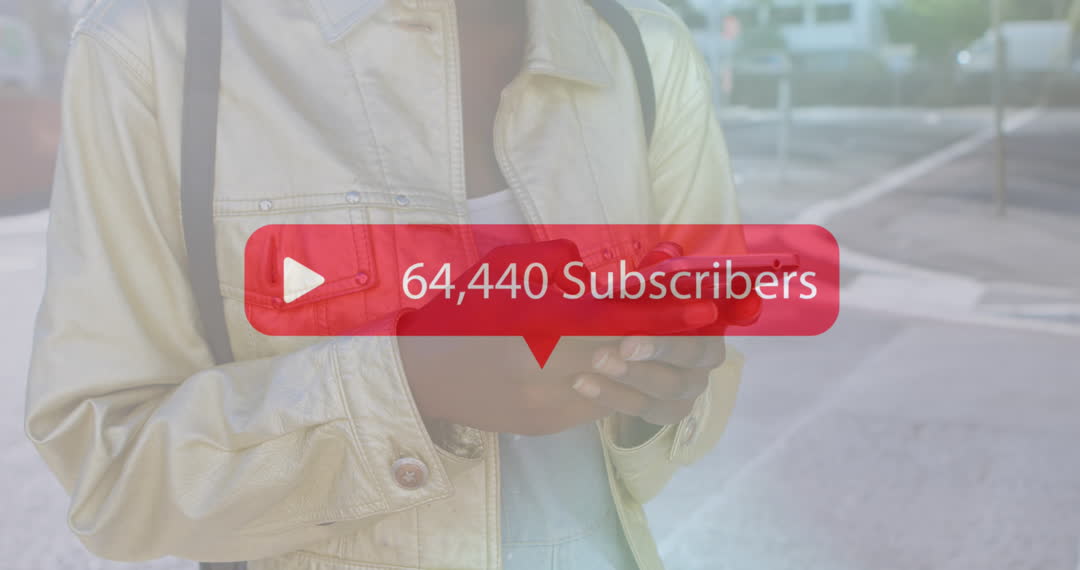 Social Media Success Concept with Subscriber Icon Overlay Video