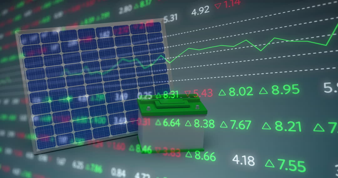 - Solar Panels with Financial Graphs Indicating Green Energy Market Trends
