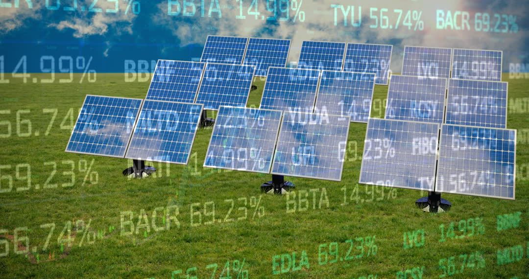 - Solar Panels with Overlay of Financial Data Harnessing Energy