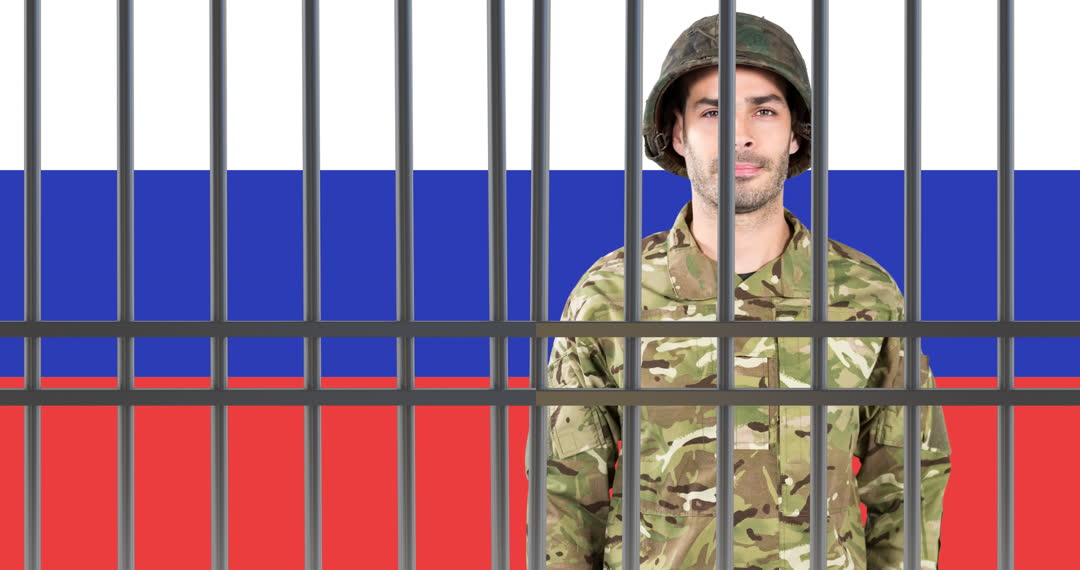- Soldier Behind Bars with Russian Flag Revealing Legal Issues