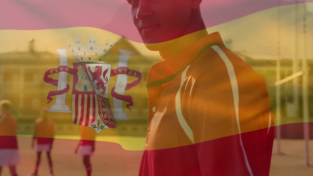 - Spanish Flag Animation Over Rugby Players in Stadium