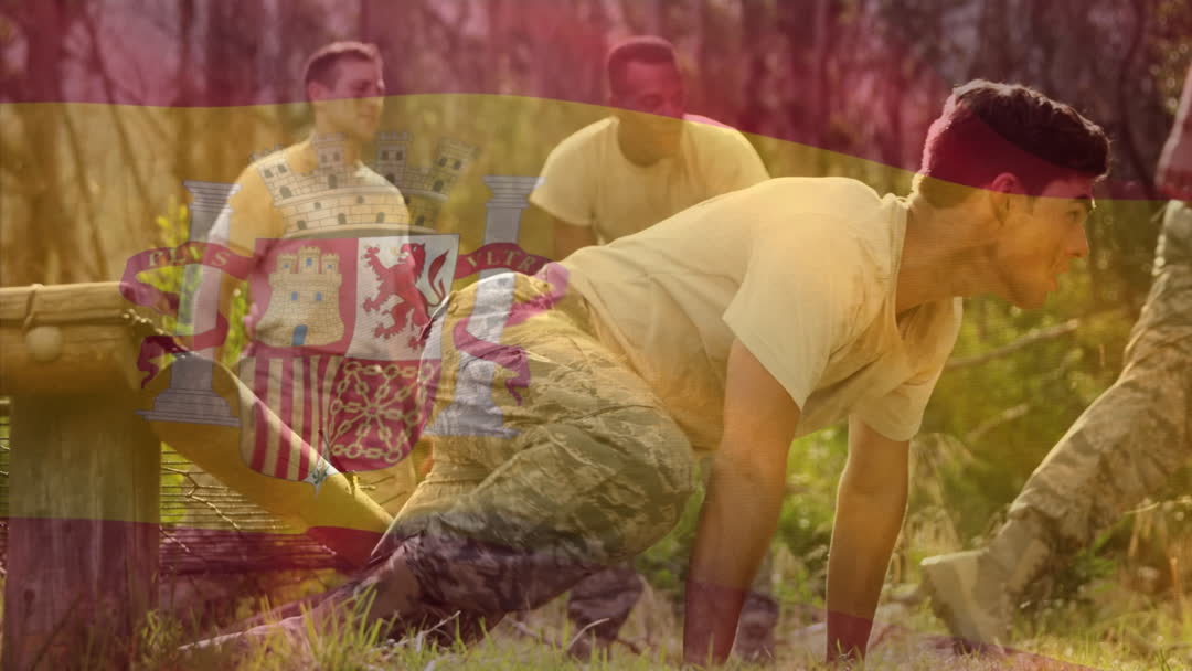Spanish Flag Overlay on Diverse Soldiers During Training Video