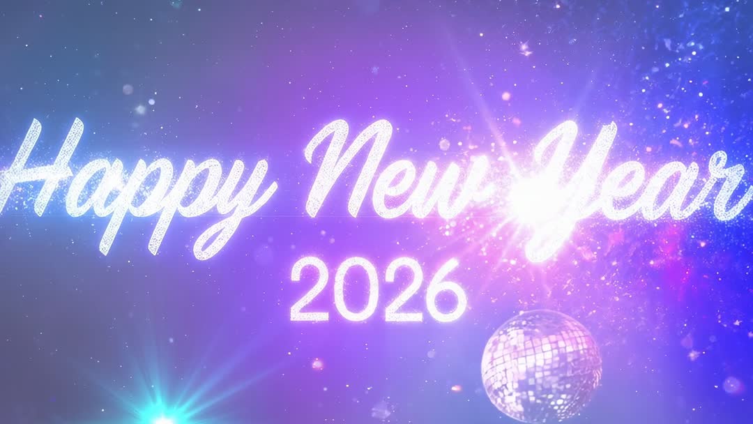 - Sparkling Happy New Year 2026 Animated Background with Disco Ball, Glitter, Bokeh and Flares