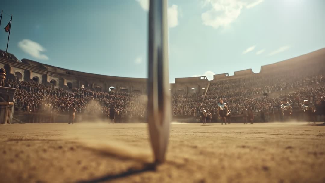 - Spear Tip POV Capturing Gladiators Charging into Ancient Colosseum Arena