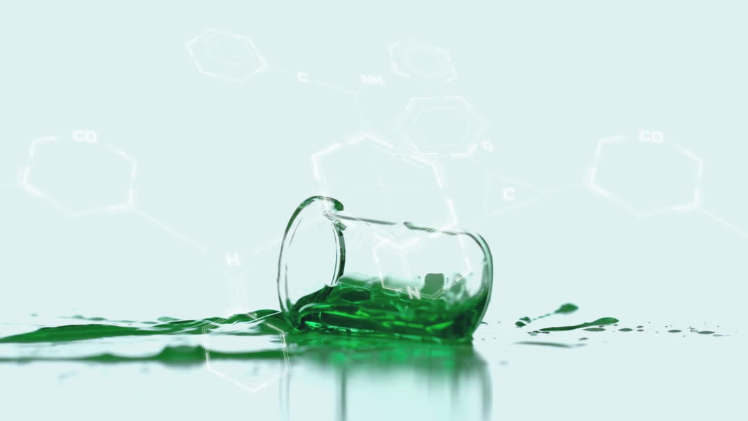 <a target="_blank" href=https://pikwizard.com/video/spilled-green-liquid-from-glass-beaker-in-biochemistry-lab/21aef3c65d091e95cf6baa9a5ead961e/>PikWizard</a>