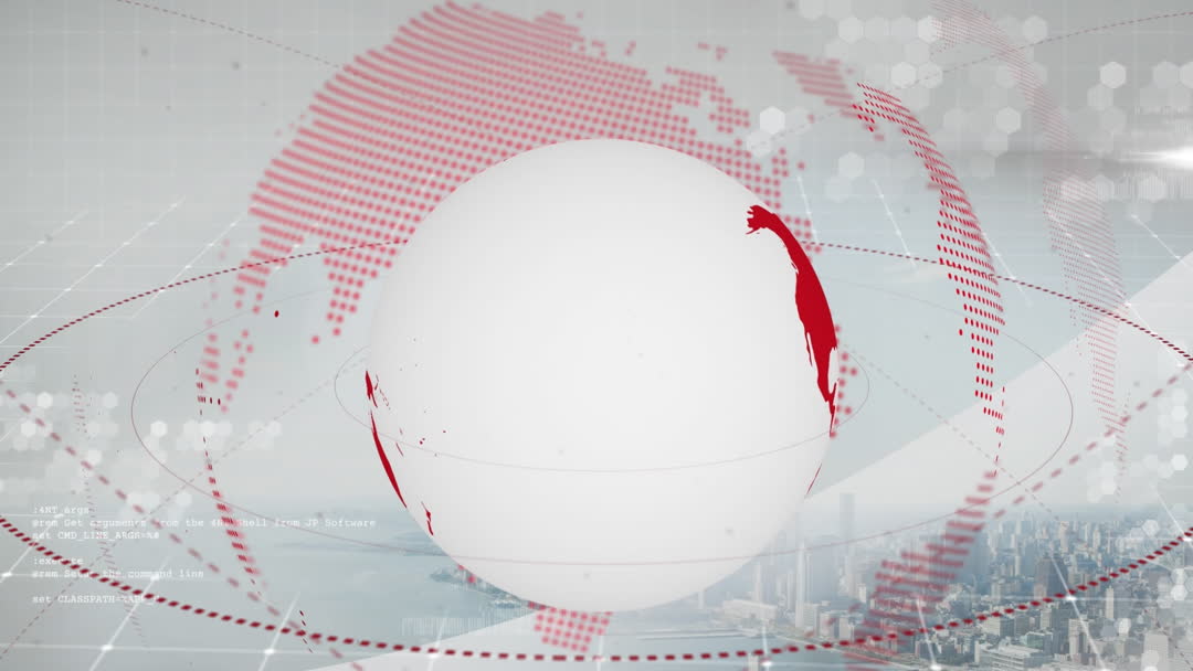 Spinning Globe Over City Sunrise Digital Visualization Video