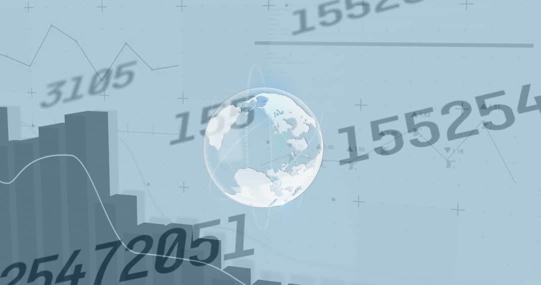 - Spinning Globe with Dynamic Financial Data Visualization Concept