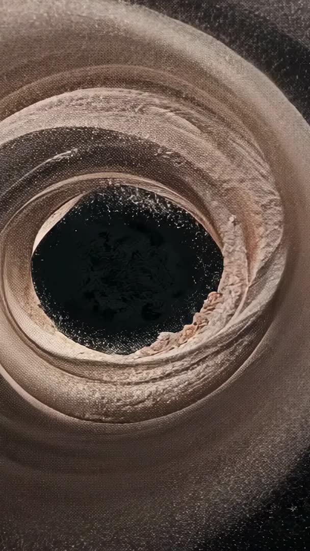 AI Generated Video. Vertical slow-motion clip showing spinning powder forming precise concentric rings around dark circular center in studio environment. High-contrast lighting highlighting fine granules and swirling dust, red flecks punctuating neutral tones for dramatic accent. Close-up framing emphasizing texture, motion and halo effect while particles orbit container rim. Loop-friendly sequence suitable for short-form social media reels, music visuals and title backgrounds. Useful for commercial ads, product packaging animation, science and education visuals, abstract art installations, broadcast motion segments and cinematic transitions. Enabling color grading for warm or cool moods, overlaying text or logos, and cropping for square or landscape formats. Delivering versatile abstract motion for branding, digital campaigns, music promos and creative video projects.