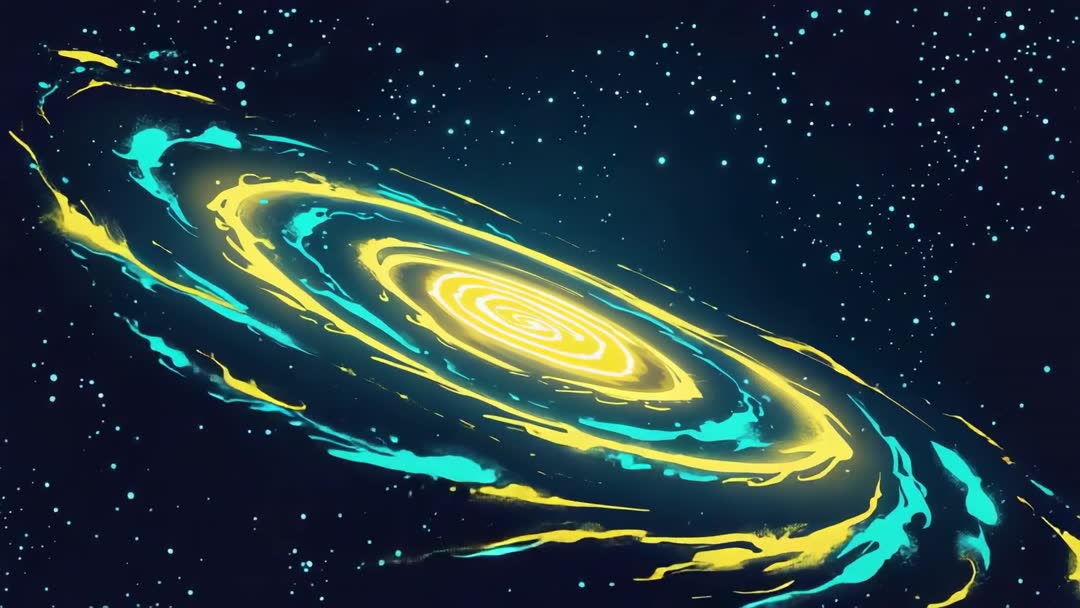 AI Generated Video. This vibrant representation of a spiral galaxy showcases its glowing core with swirling, cyan and yellow arms twirling across the starry deep space backdrop. Perfect for illustrating concepts in astronomy or adding a celestial theme to projects, it can enhance articles, educational content, or presentations exploring the mysteries of the universe.