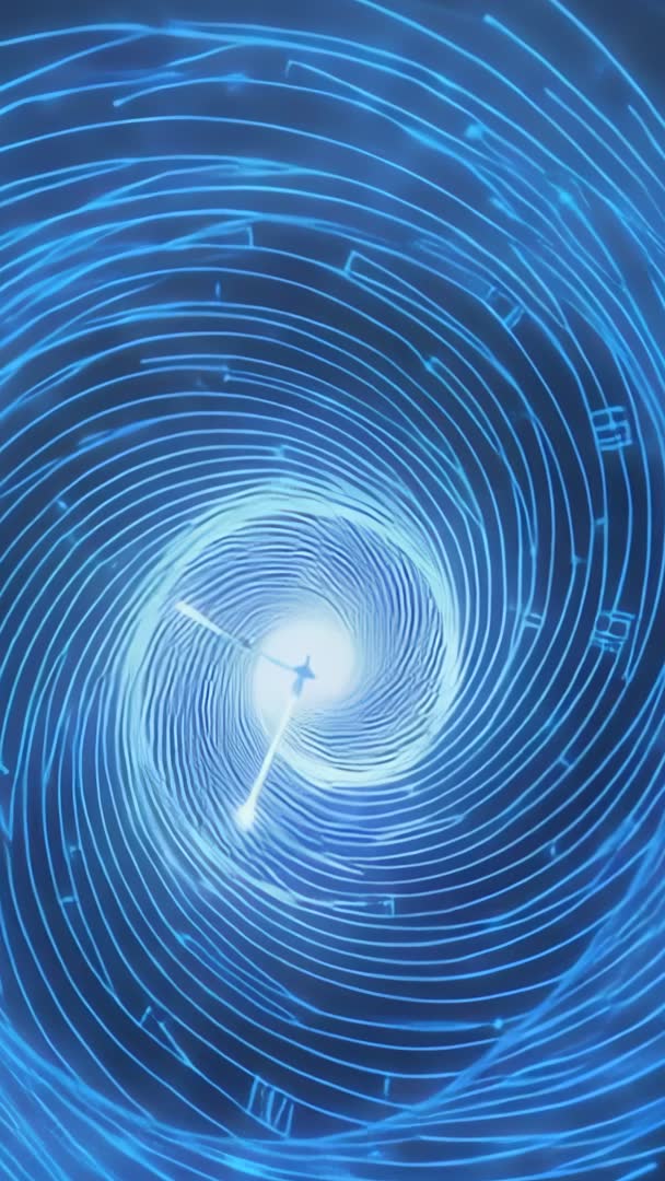 AI Generated Image. Vertical video showing spiral vortex of neon blue lines spiraling inward toward luminous core, pulling floating digital glyphs and numeric symbols into center. Motion flowing smoothly, creating hypnotic depth with layered concentric rings and strong parallax. Futuristic tech palette and subtle particle trails adding electric energy. Useful for backgrounds in tech promos, sci fi openers, app intros, music visualizers, social media vertical ads, and broadcast bumpers. Recommend looping for 6-15 second clips, pairing with ambient electronic soundtrack, overlaying logo or title at center, and using crossfade or zoom cuts for transitions. Deliverables include vertical 9:16 aspect ratio with common resolutions 1080x1920 and 2160x3840. Export tips: render seamless loop, color grade to match brand, deliver H.264 or ProRes files for broadcast and web use. Licensing suitable for commercial, editorial, and advertising projects.