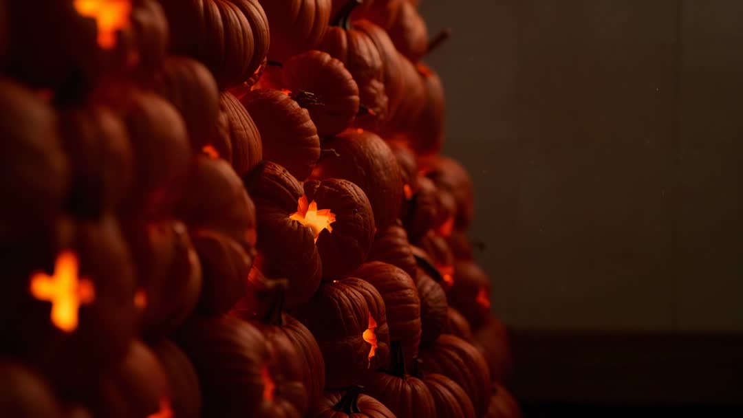 Stacked Carved Pumpkins with Flickering LED for Halloween Ambiance Video