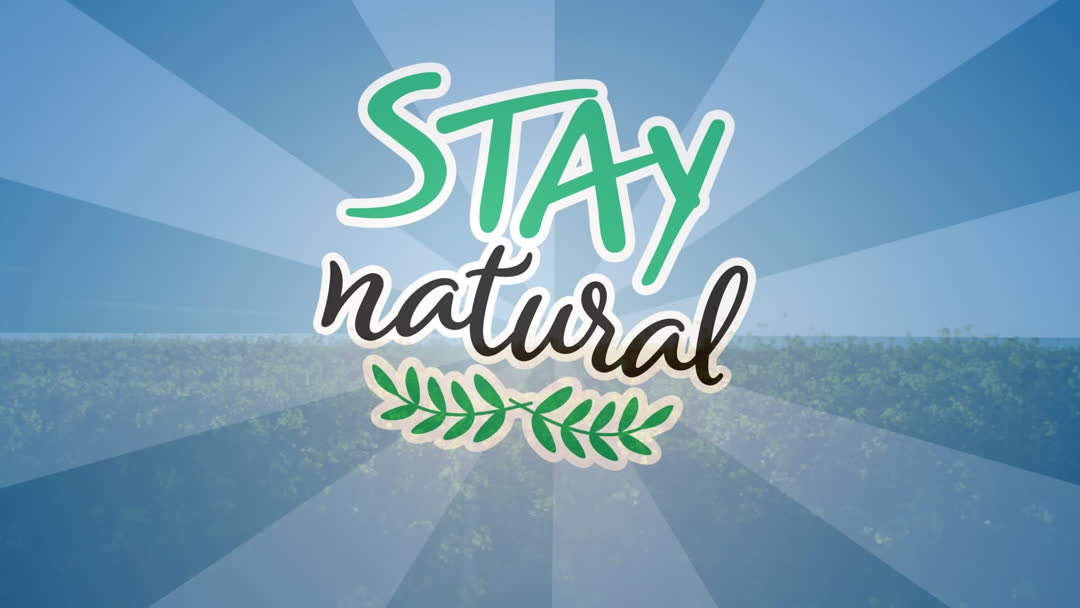 Stay Natural Text Overlay on Field of Canola Flowers with Clear Sky Video