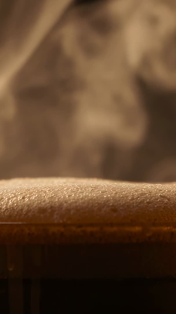 - Steaming Espresso Crema Bubbling on Cup Rim Vertical Macro Video for Beverage Ads