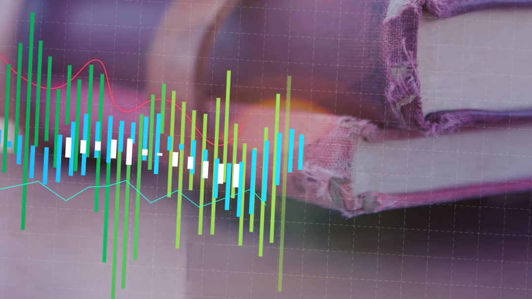 Visualization of stock market data overlaid on books suggests an integration of knowledge and finance. This video is suitable for content related to banking, investments, economic studies, and financial education. Ideal for illustrating articles or websites focusing on economic analysis, personal finance teaching aids or business consultancy.
