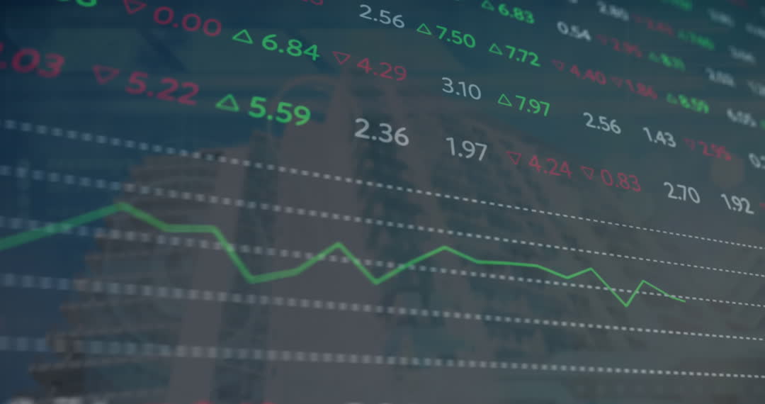 Shows stock market data graphs and digital numbers, suitable for financial analysis presentations, business strategy planning, and economic reports. Ideal for financial industries and investment tutorials.
