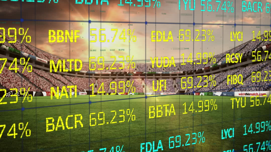 Stock Market Data Overlaid on Sports Stadium Environmental Graphics Video
