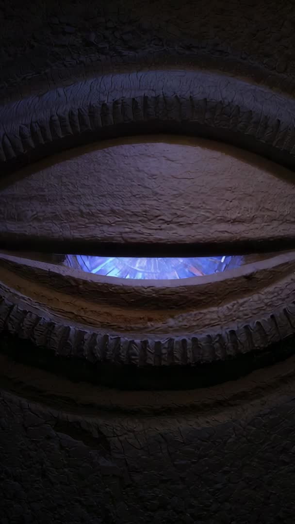 - Stone Eye Portal Revealing Blue Pulsing Rays with Sliding Lid Closing and Lifting
