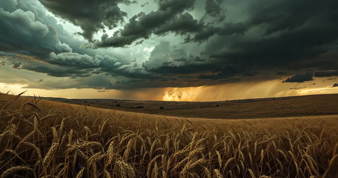 - Storm Clouds Gathering Over Golden Wheat Field with Dramatic Skies