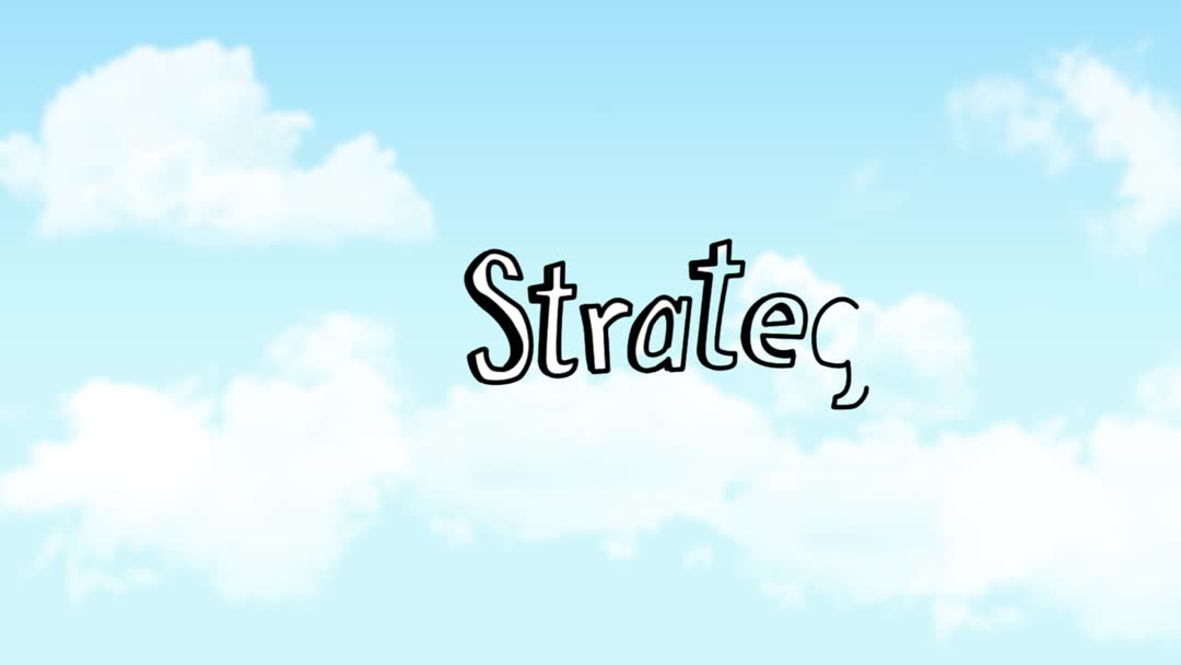 Animated scene showcasing text 'Strategy' hovering against a backdrop of peaceful blue sky filled with fluffy white clouds. This visual symbolizes brainstorming, goal-setting, and the clarity needed to achieve success through strategic planning. Ideal for use in business presentations, motivational talks, or educational materials focusing on planning and execution.