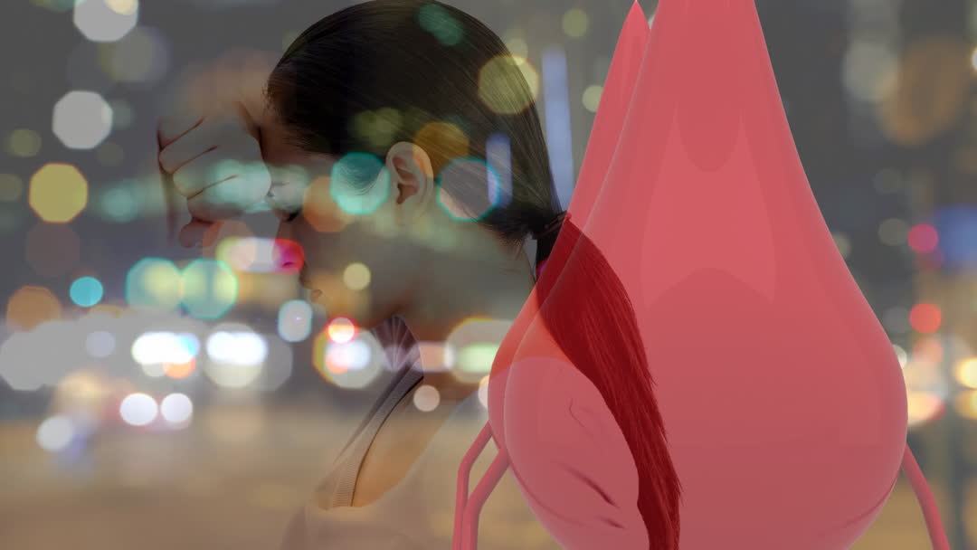 Stressed Woman with City Lights and Ear Concept Visualization Video