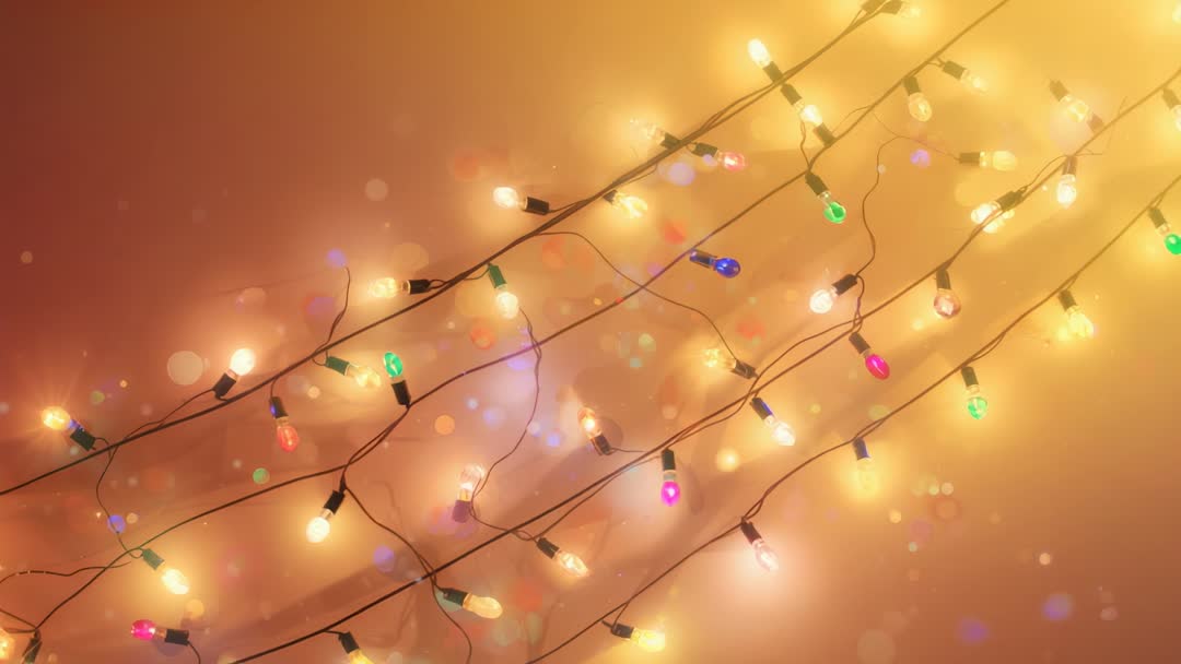 AI Generated Video. Video clip showing string lights glowing and twinkling across warm amber backdrop with colorful bulbs and soft bokeh. Footage working well for holiday and seasonal marketing, event promos, party invitations, and social media reels. Use as website hero loop, background for product presentations, overlay for greeting animations, or mood-setting element in interior design videos. Clip offering easy color grading, loopable frames for seamless playback, and close-up details for dramatic depth. Recommended for festive banners, retail displays, wedding reception montages, and ambient lighting tutorials.