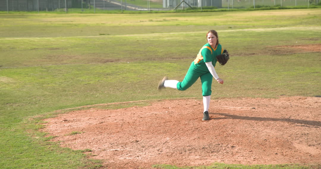 - Strong Female Pitcher Throwing Fastball on Baseball Field with Focus