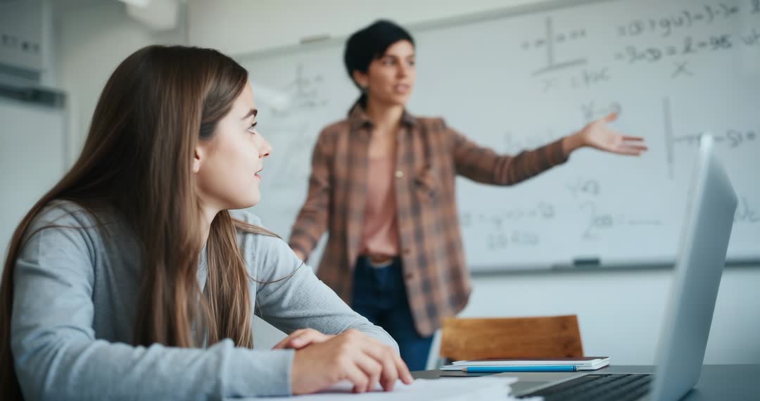 - Student Engaged in Math Class with Teacher Giving Instructions