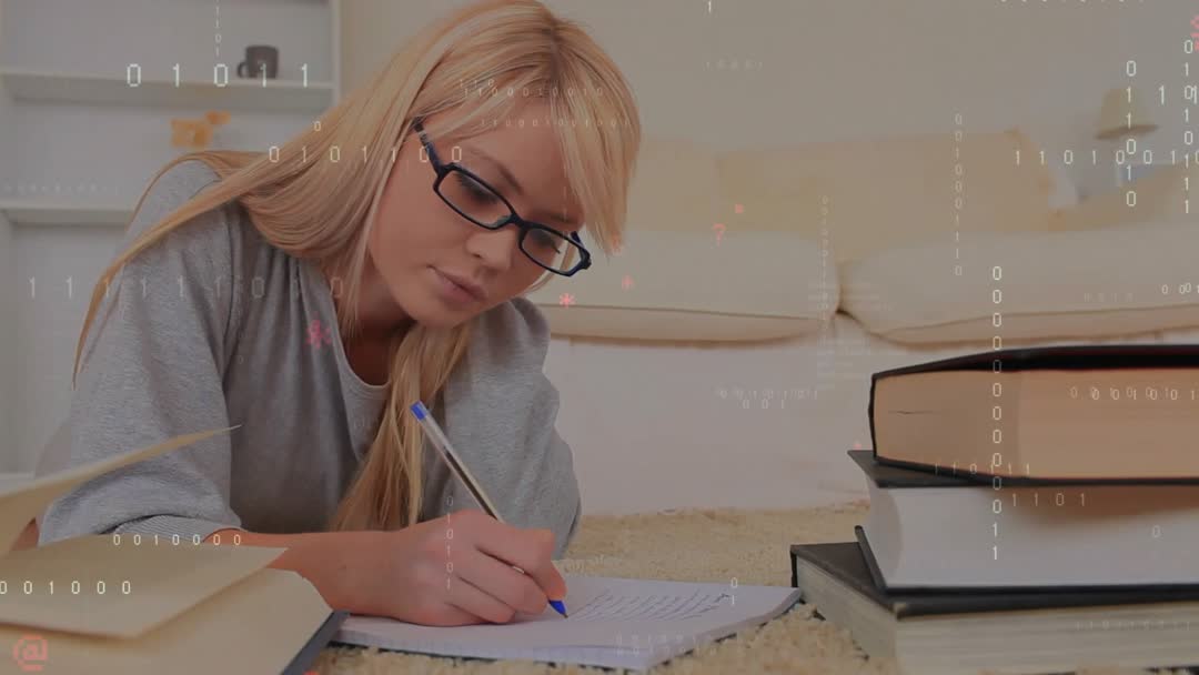Student Lying on Floor Writing Notes Amidst Binary Code Video