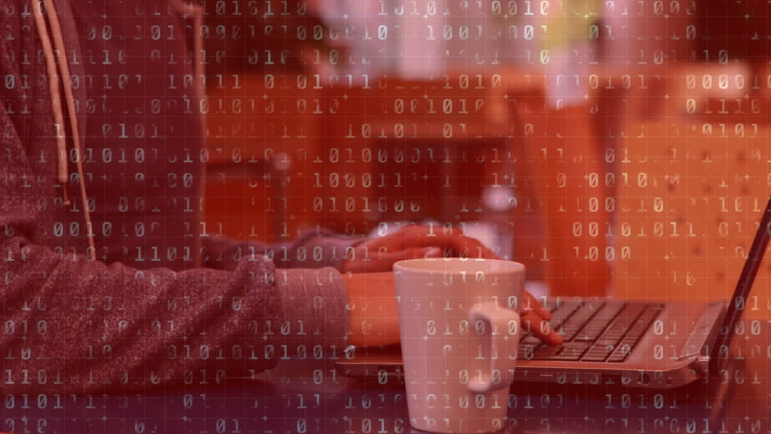 Highlighting modern education and technology, this shows a student engaging with digital tools amidst a backdrop of binary code, emphasizing learning or programming in a tech-focused environment. Ideal for articles or blogs about digital transformation in education, coding classes, or online learning platforms.