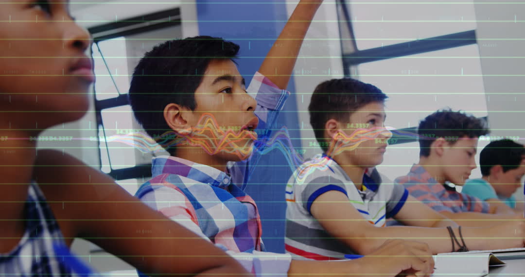 - Students Engaged in Learning Amid Financial Graph Overlay
