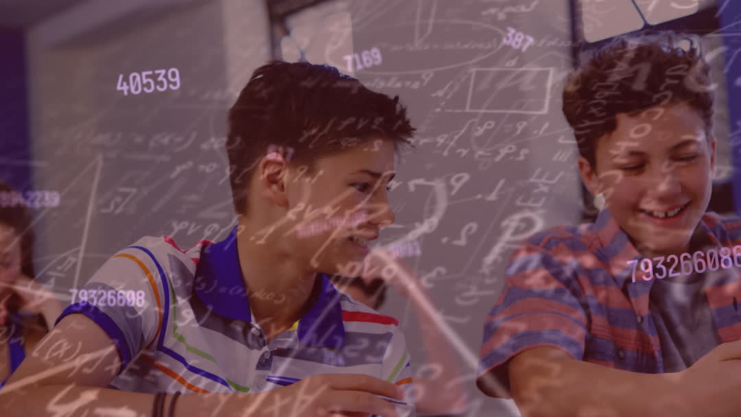 - Students Enjoying Learning with Digital Math Concepts Overlay