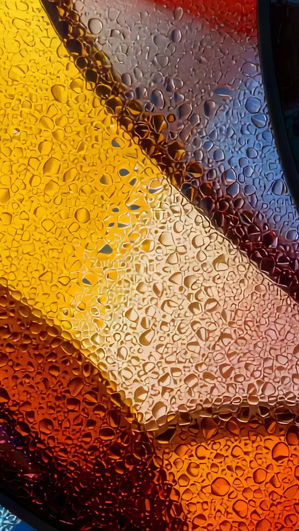 AI Generated Image. Showing vertical studio panning right over backlit colored glass panels covered with condensation droplets and intricate refraction patterns. Featuring bold bands of orange, yellow, blue and red, high contrast rim light, and rich textured surface details that catch highlights and shadows. Shot in 9:16 vertical format with close-up macro feel, delivering strong graphic composition and cinematic motion ideal for mobile-first platforms. Working well as abstract motion background for product promos, title sequences, social media stories, music video overlays, website hero banners, and creative visual transitions. Offering easy color grading flexibility and loopable segments for seamless repeats. Useful for designers, editors, advertisers, and content creators looking for modern, vibrant, wet-glass textures to add depth and mood to commercial, editorial, and branding projects.