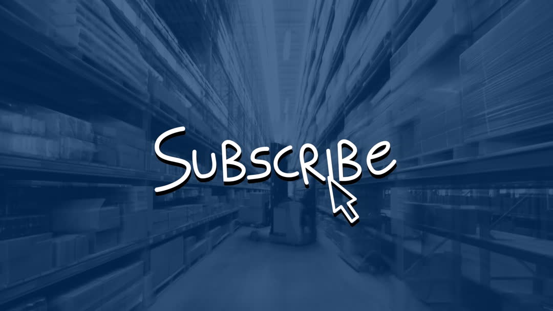 Subscribe Button Overlaying Warehouse with Forklift Video