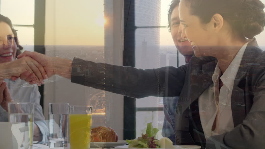 - Successful Business Agreement Amidst Global Cityscape Backdrop