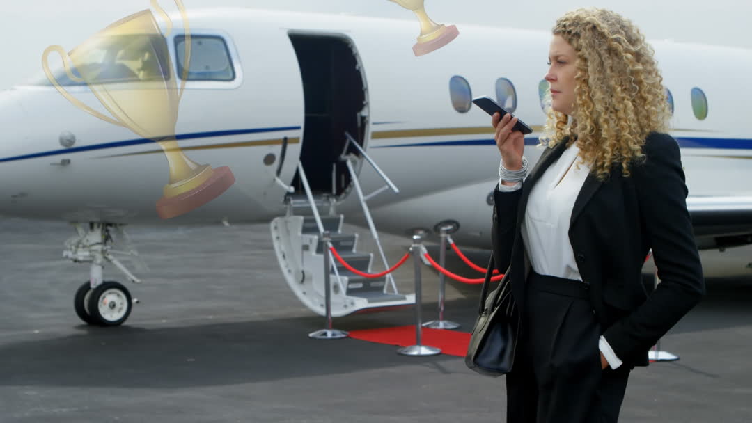Successful Businesswoman Using Smartphone by Private Jet Video