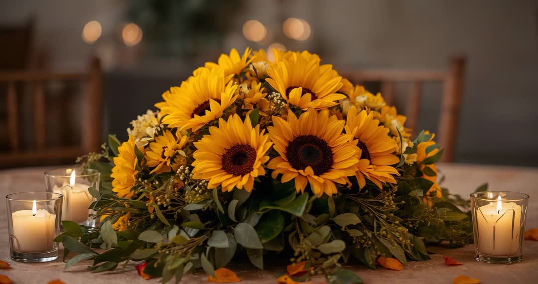 - Sunflower Centerpiece with Flickering Candlelight for Warm, Rustic Elegance